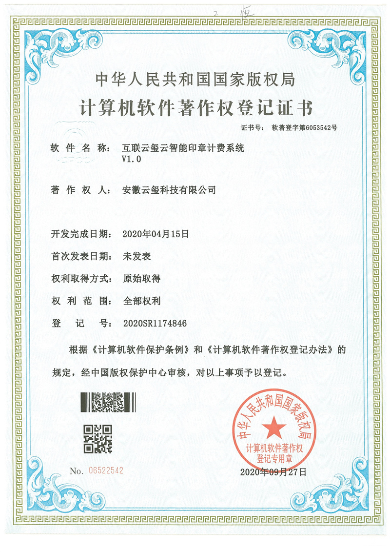 互聯(lián)云璽云智能印章計費系統(tǒng)V1.0